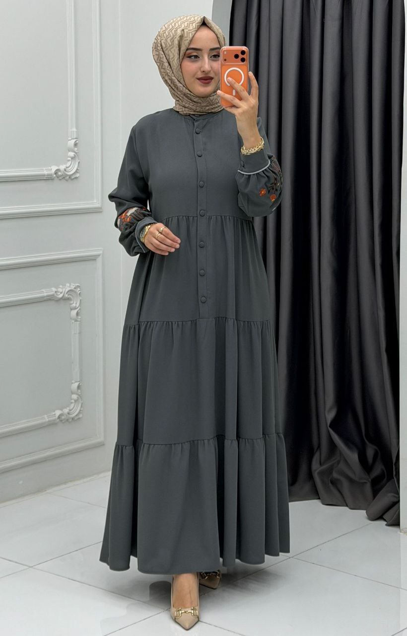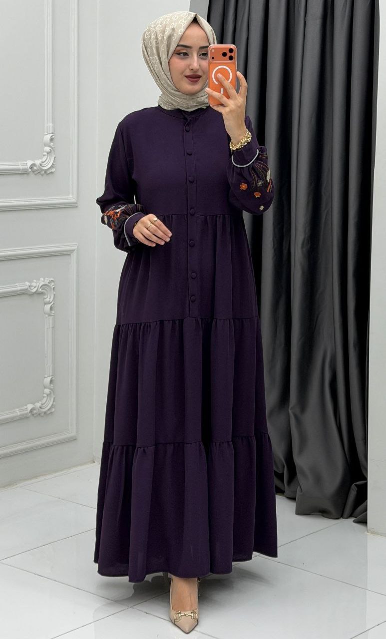 تصاميمنا وُلدت لتروي قصة جمالكِ الطبيعي! 🎨 يتميز الفستان بـ قصة الطبقات المتدرجة (Tiered Design) التي تنسدل بنعومة وتمنحكِ حركة انسيابية ساحرة. كوني واثقة من جمال إطلالتكِ! 👑